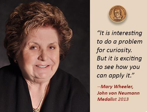 Mary Wheeler is the 2013 John von Neumann medalist. The medal is the highest award bestowed by the United States Association for Computational Mechanics.